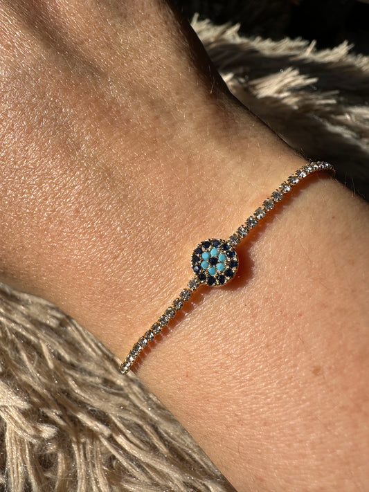 Shiny Round Shape Evil Eye Chain Bracelet, Protection bracelet, evil eye charm, Adjustable, good luck, Turkish Eye, Greek Eye,Charm Bracelet